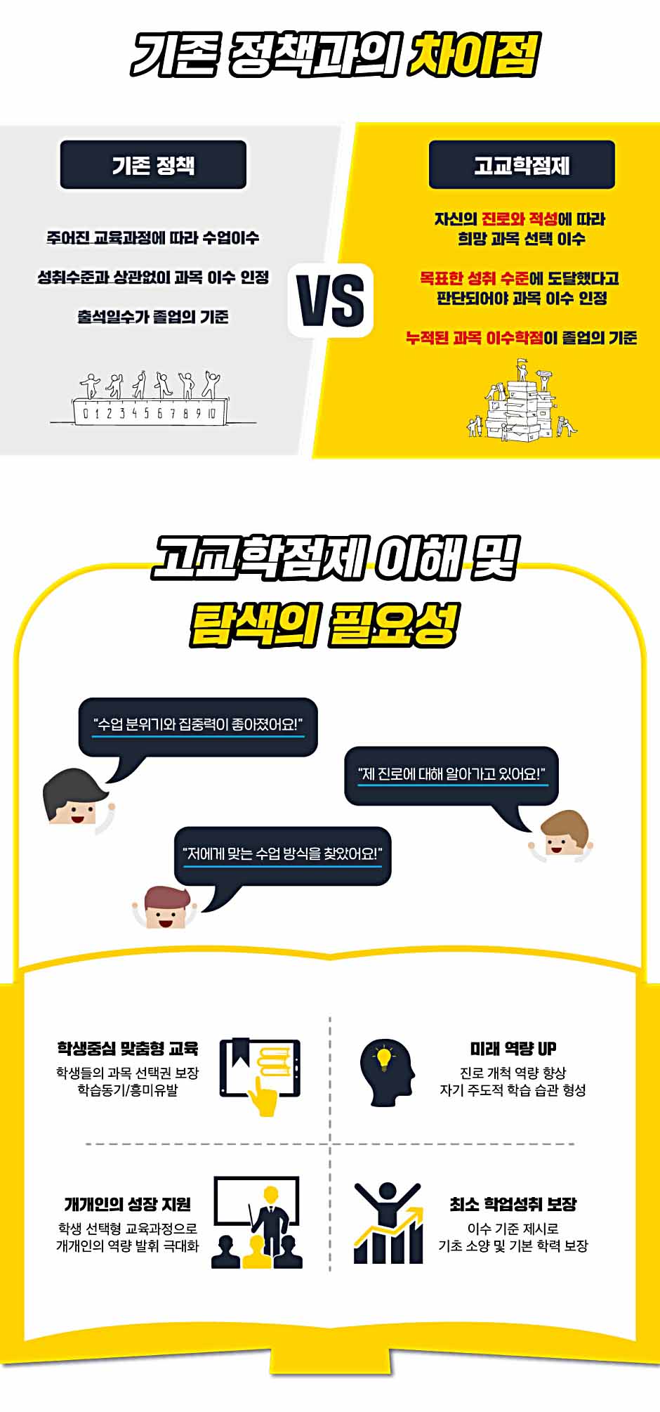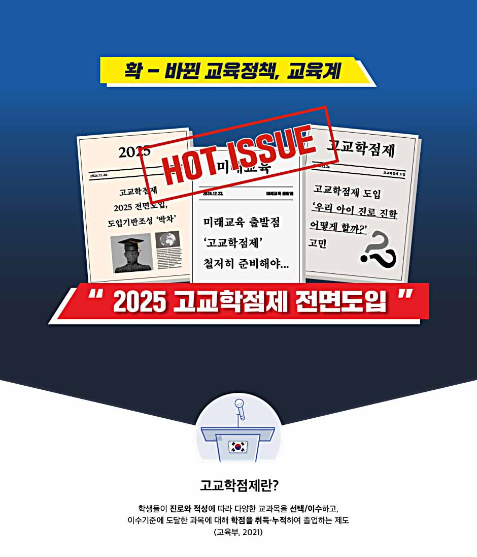 교육의 방향이 학습자 중심의 교육으로 전환됨에 따라 2025년 전국 모든 고등학교에서 ‘고교학점제’가 시행될 예정이다. ‘고교학점제’는 자신의 진로에 따라 원하는 과목을 선택 이수하고 성취 기준에 도달하여야 학점 이수가 인정되는 제도이다. “대학에는 어떤 다양한 학과들이 있을까?”, “내가 관심있는 학과의 정보를 어디서 찾아야 하지?”, “희망 진로 및 학과에 맞춘 과목 선택을 어떻게 해야 하지?” ‘고교학점제’의 시행 취지는 좋지만, 배포된 자료집으로는 학생과 교사의 갈증을 해소하기에 한계가 있었다. 고교학점제를 어떻게 준비해야할지 막막한 학생들과 학생 맞춤형 고교학점제 설계지원에 어려움을 느끼는 교사들의 고민을 동시에 해결할 수 있도록 『학과바이블』은 학생과 교사, 모두를 위해 만들어진 책이다.