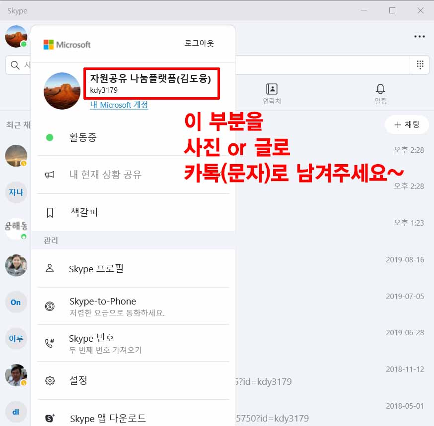 ● skype(스카치프) 셋팅